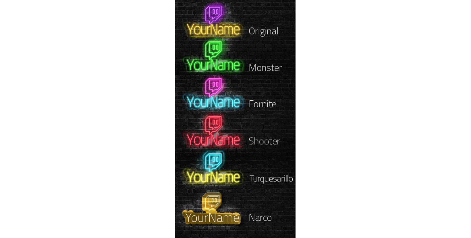 Neon Twitch + il tuo nome. Perfetto per ravvivare la tua area di gioco e i tuoi spettacoli dal vivo su twitch.