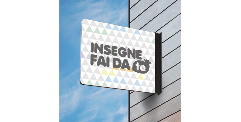 Insegna a bandiera non luminosa, bifacciale e personalizzata. Il prezzo include la stampa per entrambi i lati e le viti per il suo semplice montaggio.